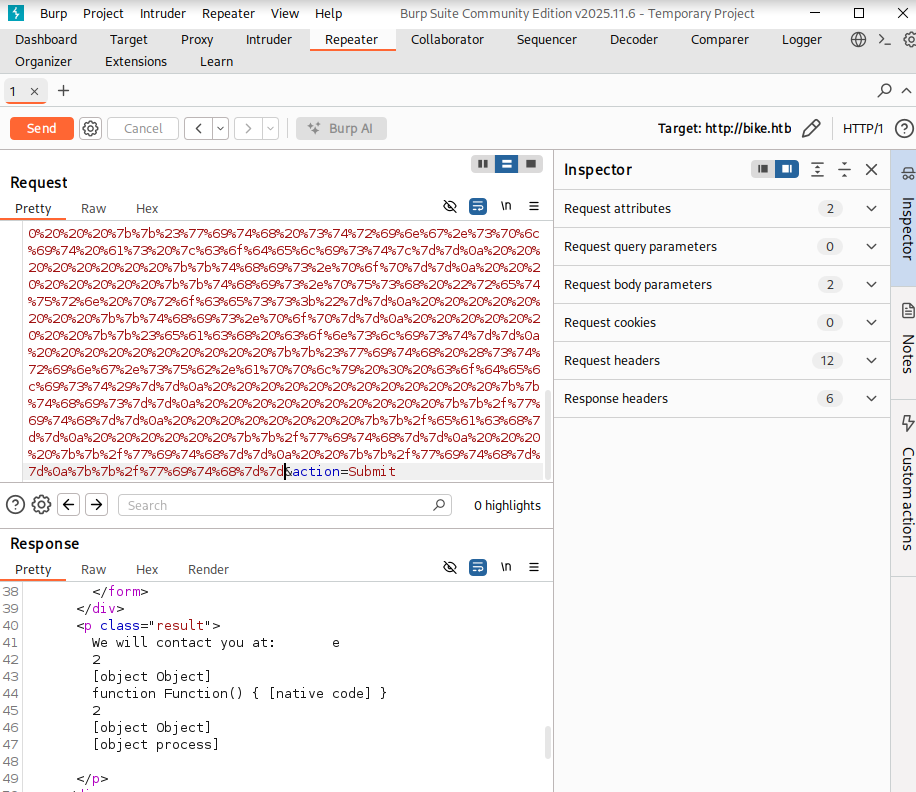 64 bytes from bike.htb (10.129.29.247): icmp_seq=2 ttl=63 time=13.3 ms