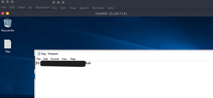 Une fois sur le bureau, on repère tout de suite un fichier texte nommé flag.txt. Il ne reste plus qu’à l’ouvrir pour admirer notre récompense.